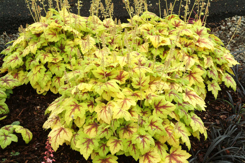 Dlužicha Electra (Heuchera ‘Electra’) tvoří kompaktní, mírně ploché trsy vysoké kolem 25 cm. Její žluté listy mají výrazné červené žilkování, které se během sezóny stává stále intenzivnějším. Na jaře jsou listy světle žluté, později získávají teplejší odstíny a dekorativní vzor se zvýrazňuje.