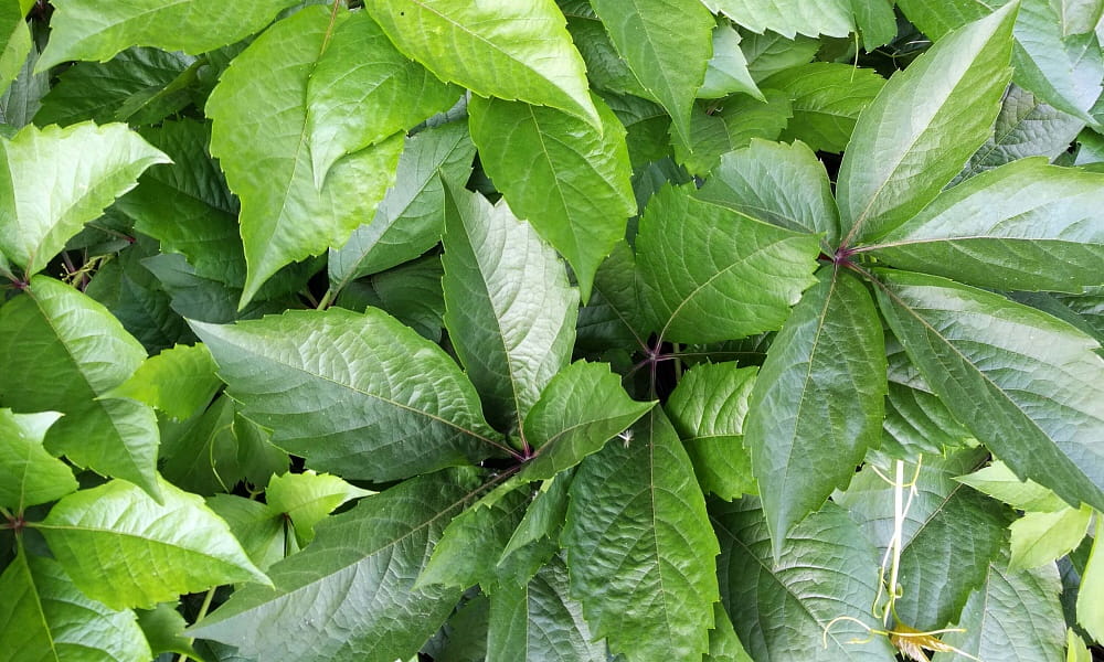 Listy jsou pětilisté, v létě zelené, na podzim se zbarvují do červených a purpurových odstínů.