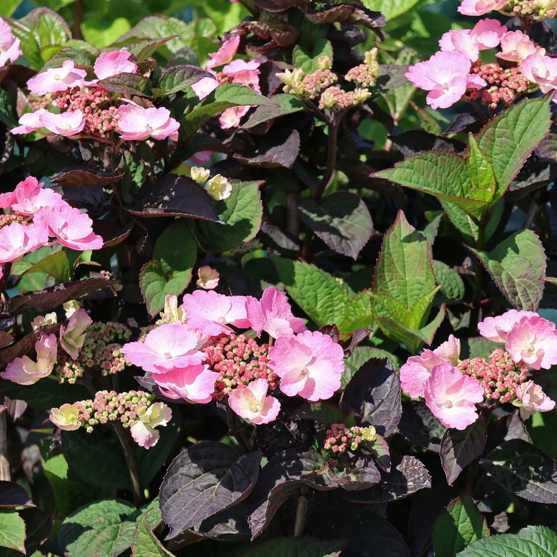 Hortenzie 'Daredevil' kvete od června do srpna. Její květenství je ploché a jemné, měnící barvu podle pH půdy. Na začátku květu jsou květy růžové, později přecházejí do modré, což vytváří krásný kontrast s tmavými, bordovými listy.