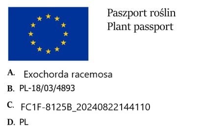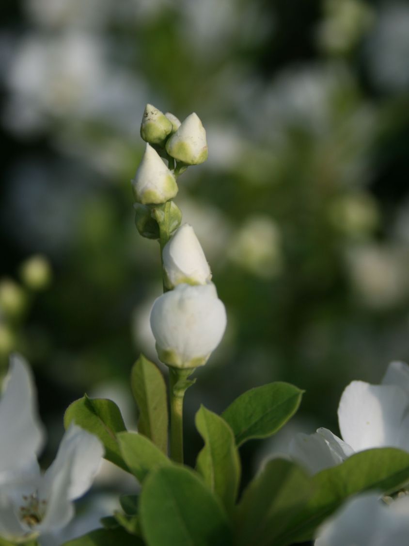 Květy jsou velké, čistě bílé, uspořádané v hustých hroznech. Jsou medonosné a lákají opylující hmyz.