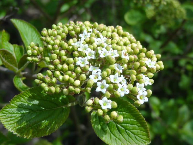 Květy jsou drobné, bílé, uspořádané do hustých květenství. Jsou atraktivní pro opylující hmyz, zejména včely a motýly, a přispívají k biodiverzitě zahrady.