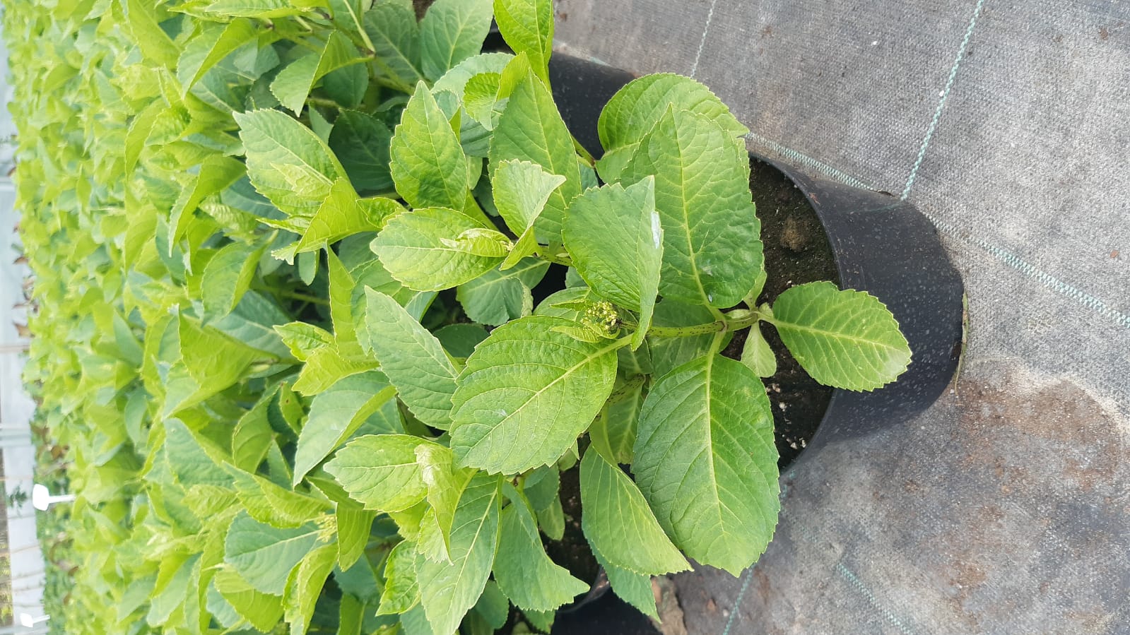 Listy jsou světlezelené, silnější, lehce kožovité a výrazně žilkované. Díky své pevné struktuře působí velmi dekorativně po celou vegetační sezónu a tvoří ideální pozadí pro květy i pozdější plody.