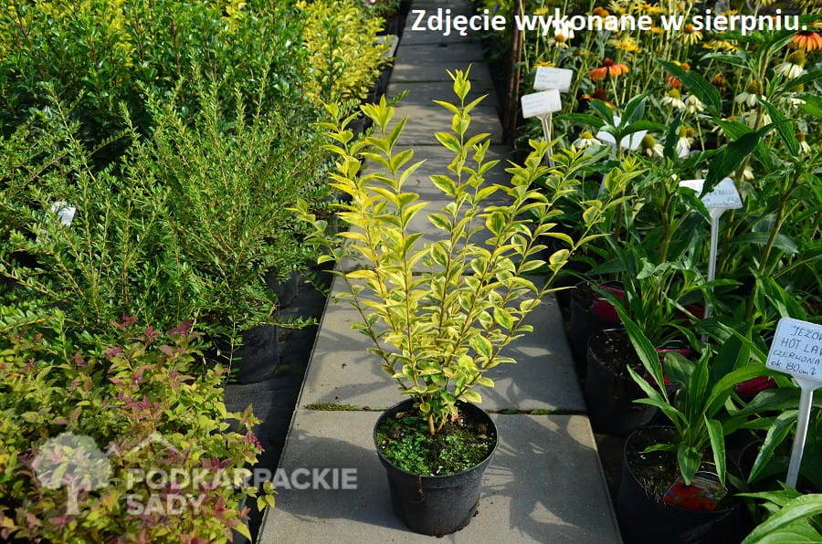 Ptačí zob vejčitolistý ‘Aureum’ je hustý, dekorativní keř s drobnými dvoubarevnými listy, ideální pro živé ploty a tvarované zahradní prvky. Vyniká zelenožlutým olistěním, které rozjasňuje zahradní kompozice.