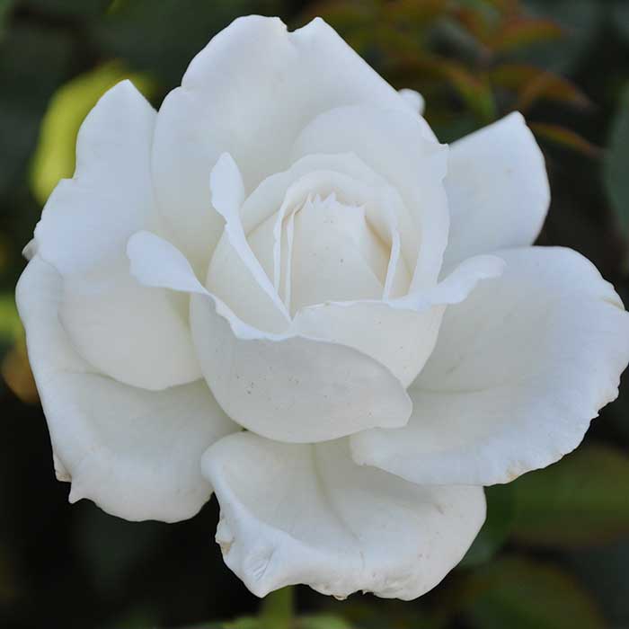 Květy jsou velké, plné, o průměru kolem 10 cm. Mají čistě bílou barvu s jemným leskem a lehkou medovou vůni. Kvetení je bohaté a opakované, rostlina si dlouho zachovává dekorativní vzhled.