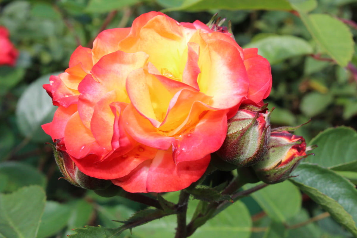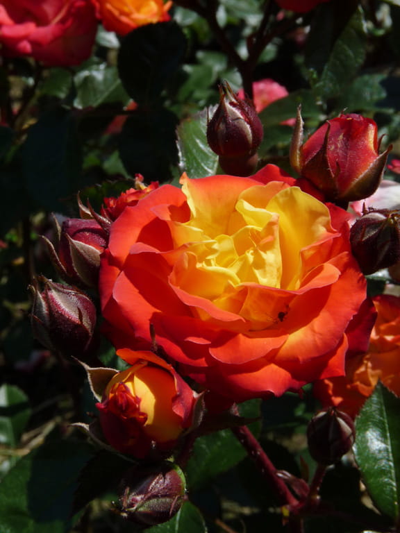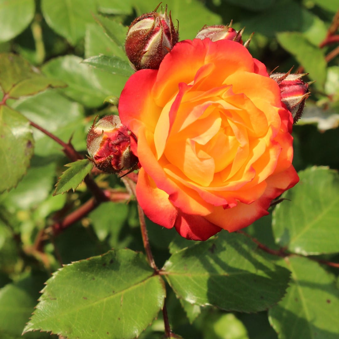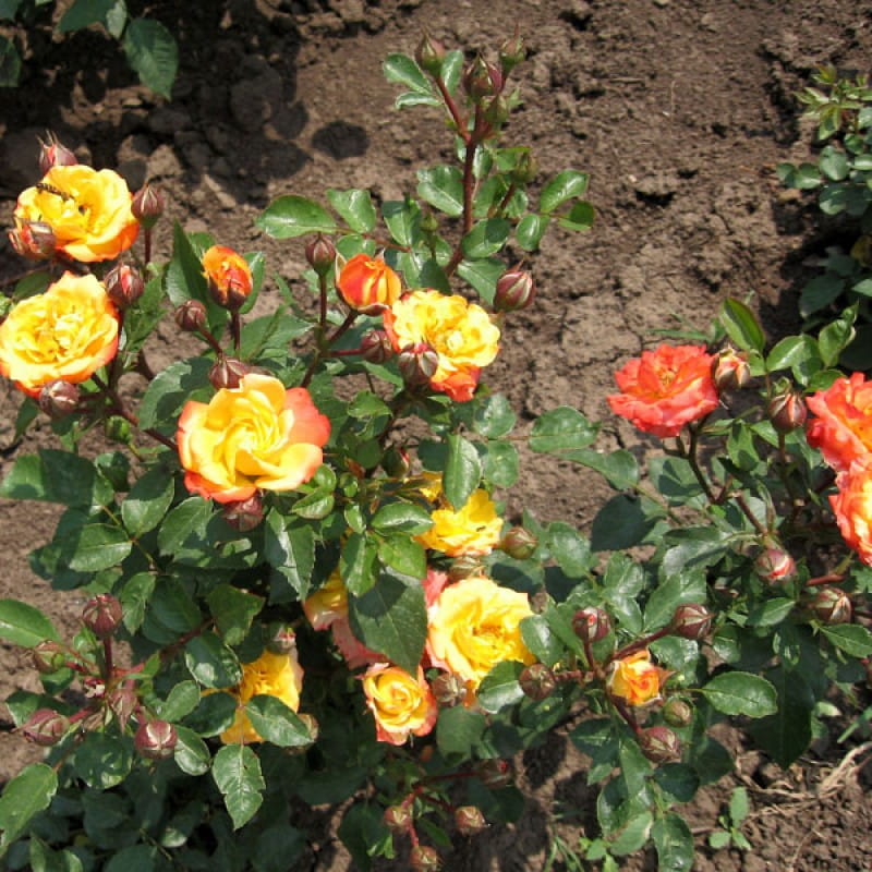 Záhonová růže Rumba je velmi dekorativní dvoubarevná odrůda, ceněná pro bohaté kvetení a výraznou barevnost. Vytváří kompaktní, dobře rozvětvený keř vhodný do záhonových výsadeb.