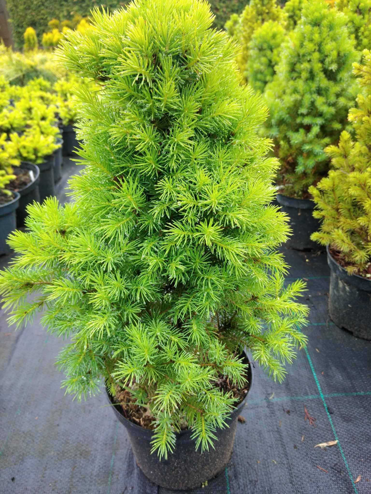 Smrk bílý CONICA (Picea glauca ‘Conica’) patří mezi nejpopulárnější a nejčastěji pěstované odrůdy smrku bílého. Pochází z Kanady a je velmi oblíbený v zahradách, na terasách i v městské zeleni. Jedná se o zakrslou, pomalu rostoucí dřevinu s velmi hustým a pravidelným kuželovitým tvarem. Díky přirozeně kompaktnímu habitu si rostlina udržuje dekorativní vzhled bez nutnosti intenzivního tvarování.