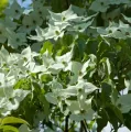 Kvete koncem jara a začátkem léta bílými až krémovými listeny, které vytvářejí velmi efektní vzhled.