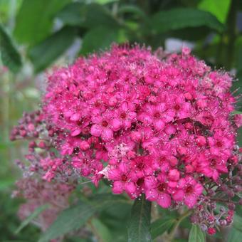 Kvete od června do července drobnými růžovými květy uspořádanými do plochých květenství. Květy lákají opylující hmyz.